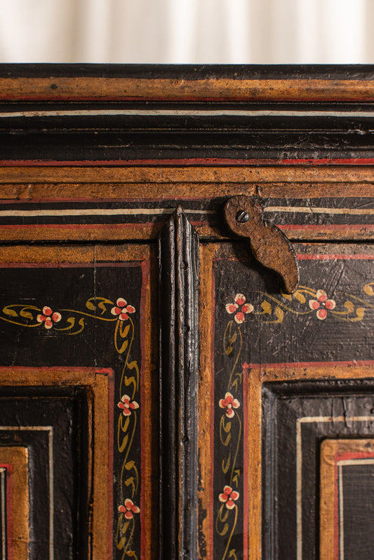 Vintage 1940s Hand Painted Lacquer Chinese Amoire Cabinet