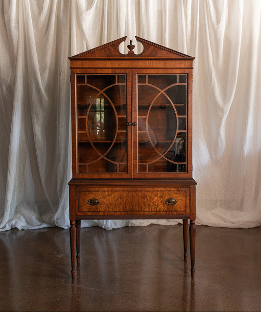 Segmental Pediment Federal Style Glass Front Display Cabinet - Mid 20th Century