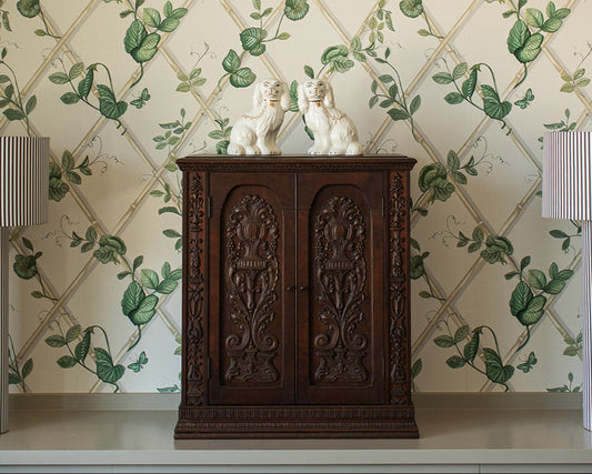 Carved Two Door Kitchen or Vanity Counter Top Cabinet