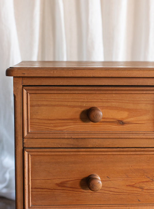 Vintage Four Drawer Pine Chest with Scallop Detail Base - Early 1900s