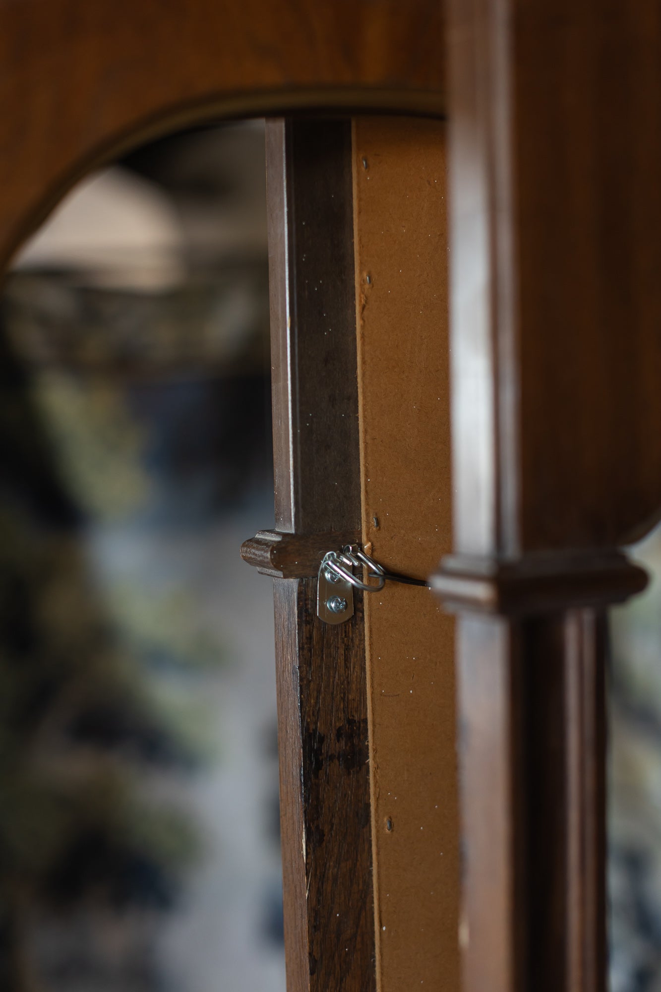 Description: This arched wood mirror features a warm, medium-toned wood frame accented with subtle gold detailing that highlights its classic architectural shape. The gently curved top and clean lines make it an easy fit for both traditional and transitional interiors. A timeless wall piece that adds depth, warmth, and quiet elegance to an entryway, bedroom, or living space. Two mirrors are available.