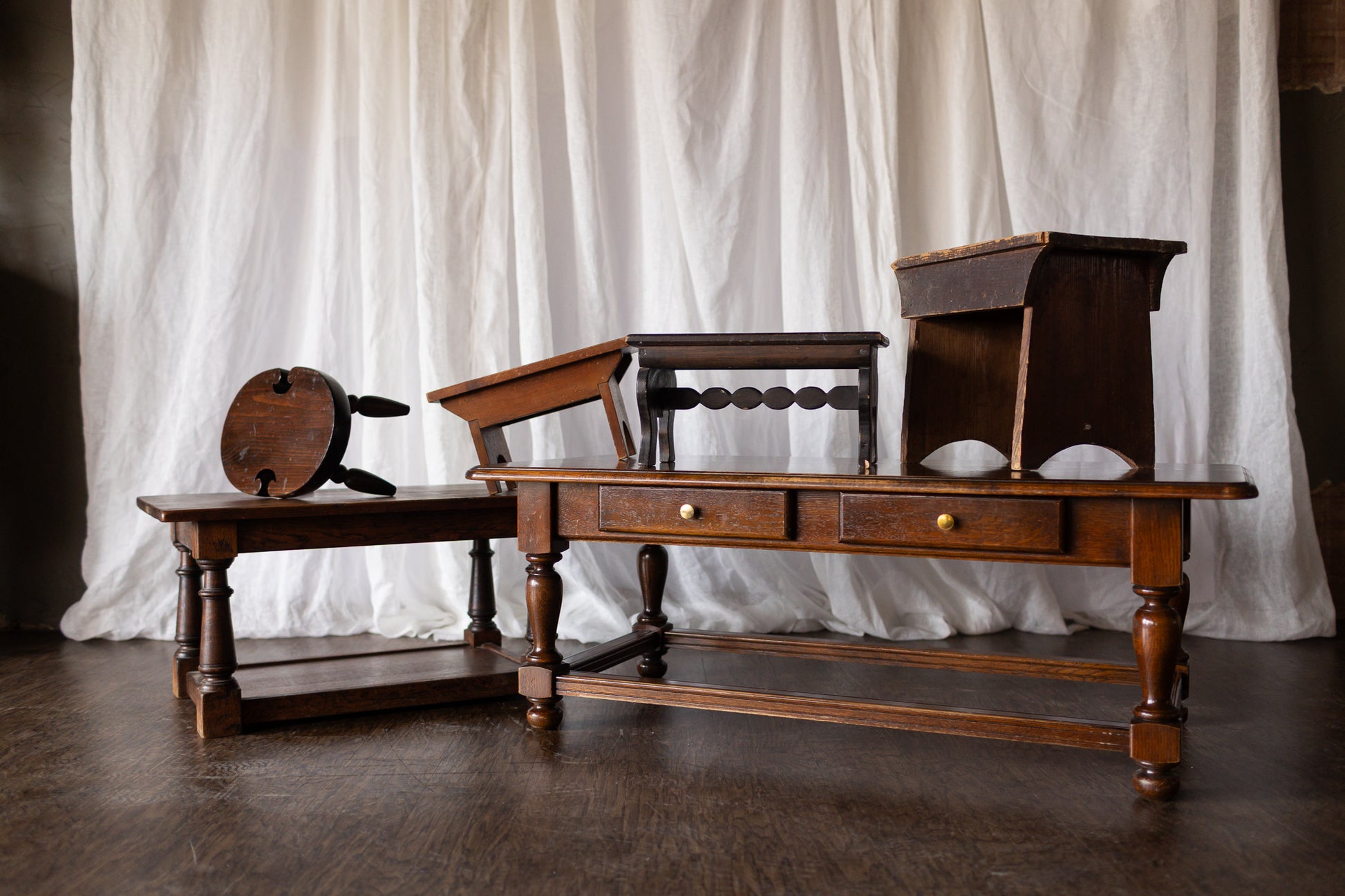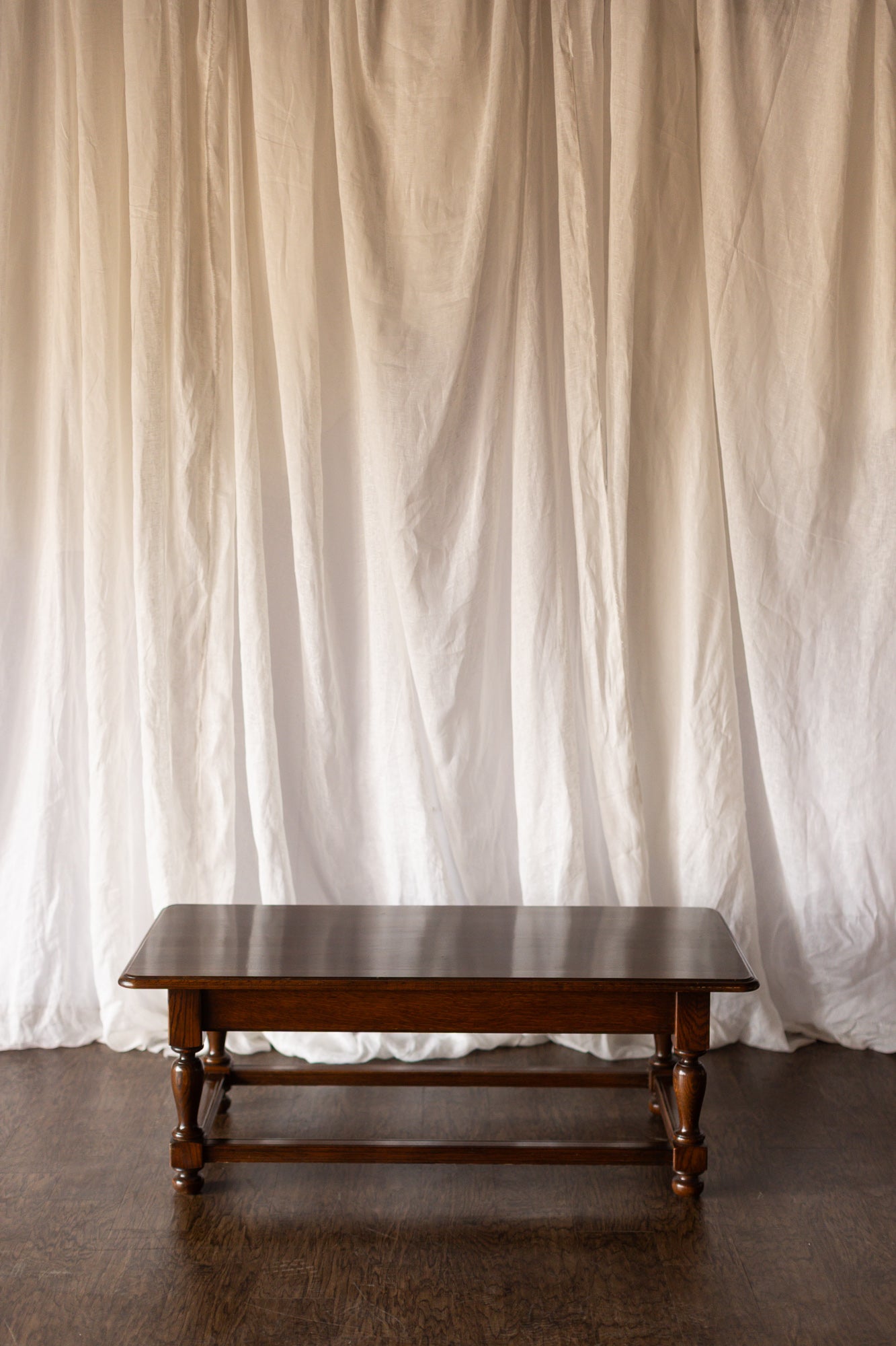 Description: This charming petite vintage oak coffee table features clean lines, substantial turned legs, and a warm, timeworn patina. A lower shelf adds both function and styling potential, perfect for books or layered décor. Sturdy and versatile, it brings classic character and effortless charm to any living space.