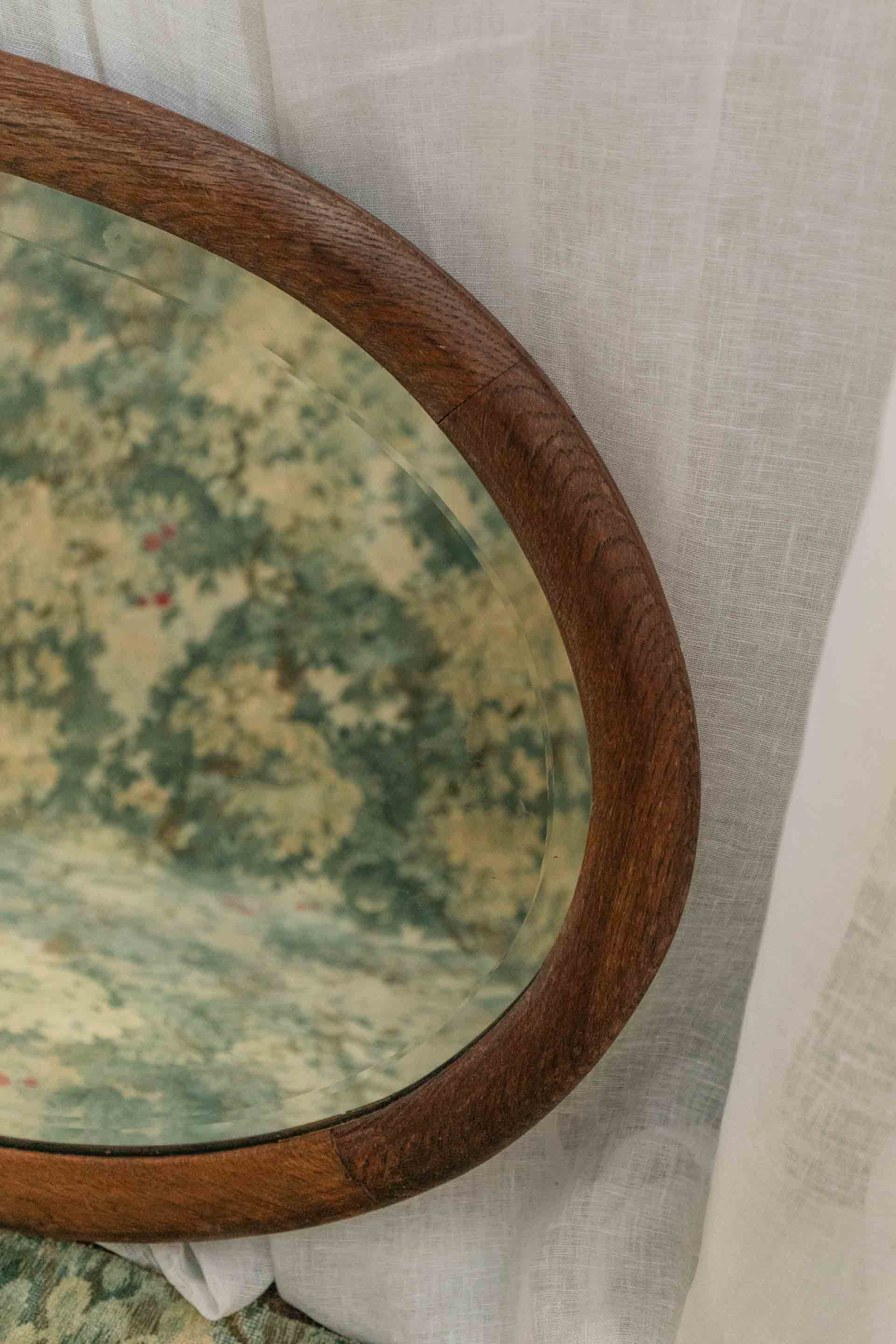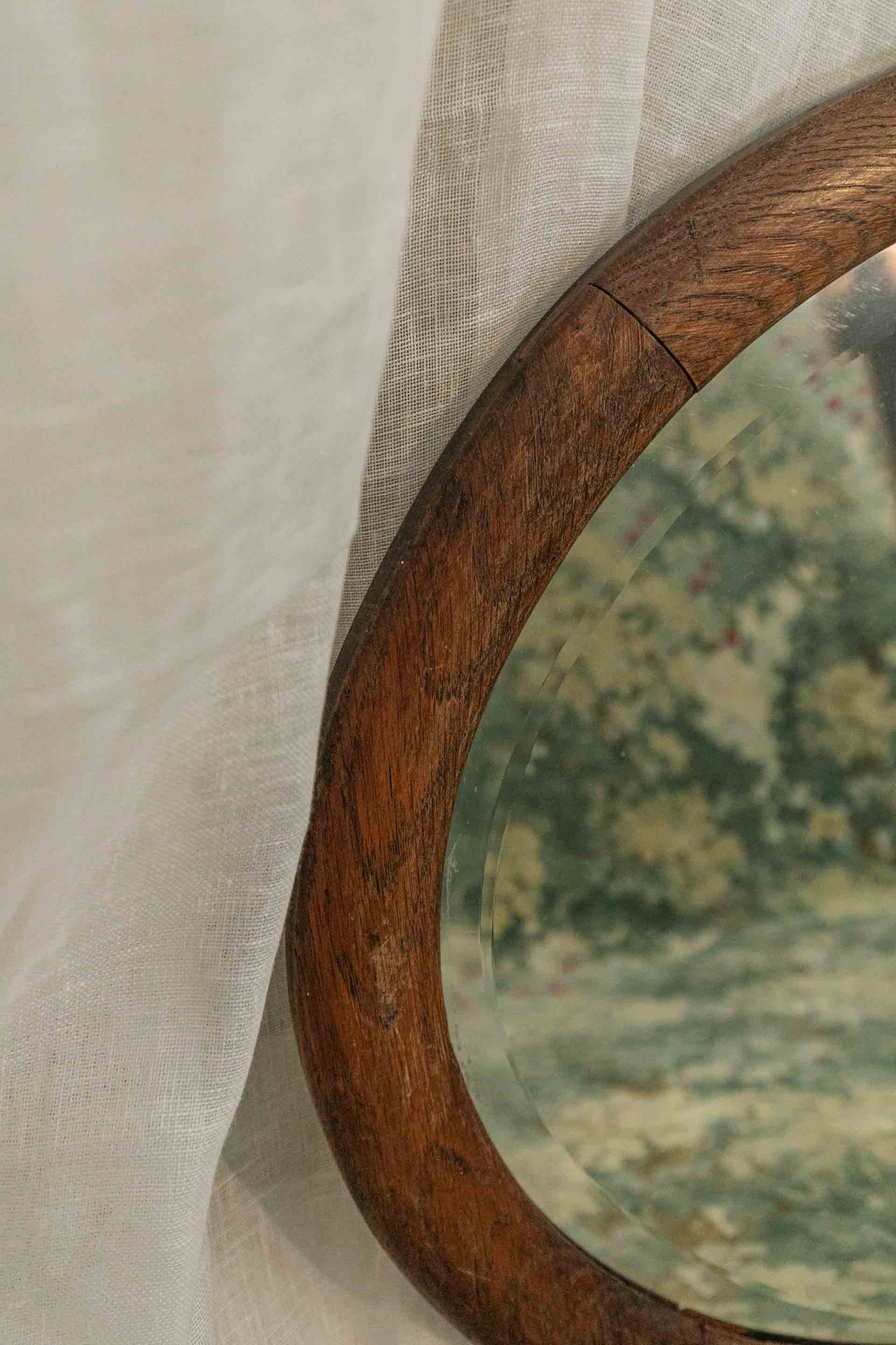 Description: This vintage horizontal oak mirror features a warm, rounded frame with a beautifully grained finish, offering a simple yet classic silhouette. Ideal for hanging above a console, dresser, or mantel, it brings a timeless touch to cottage, rustic, or traditional interiors.