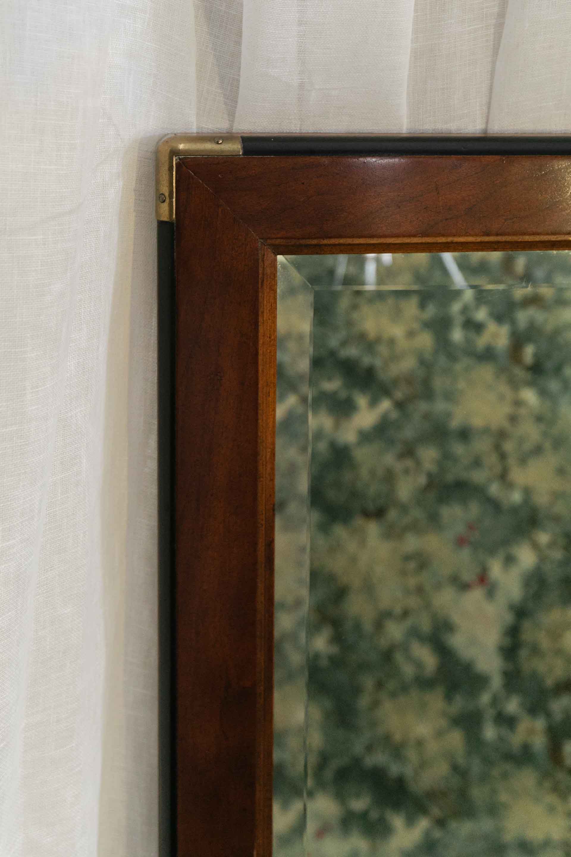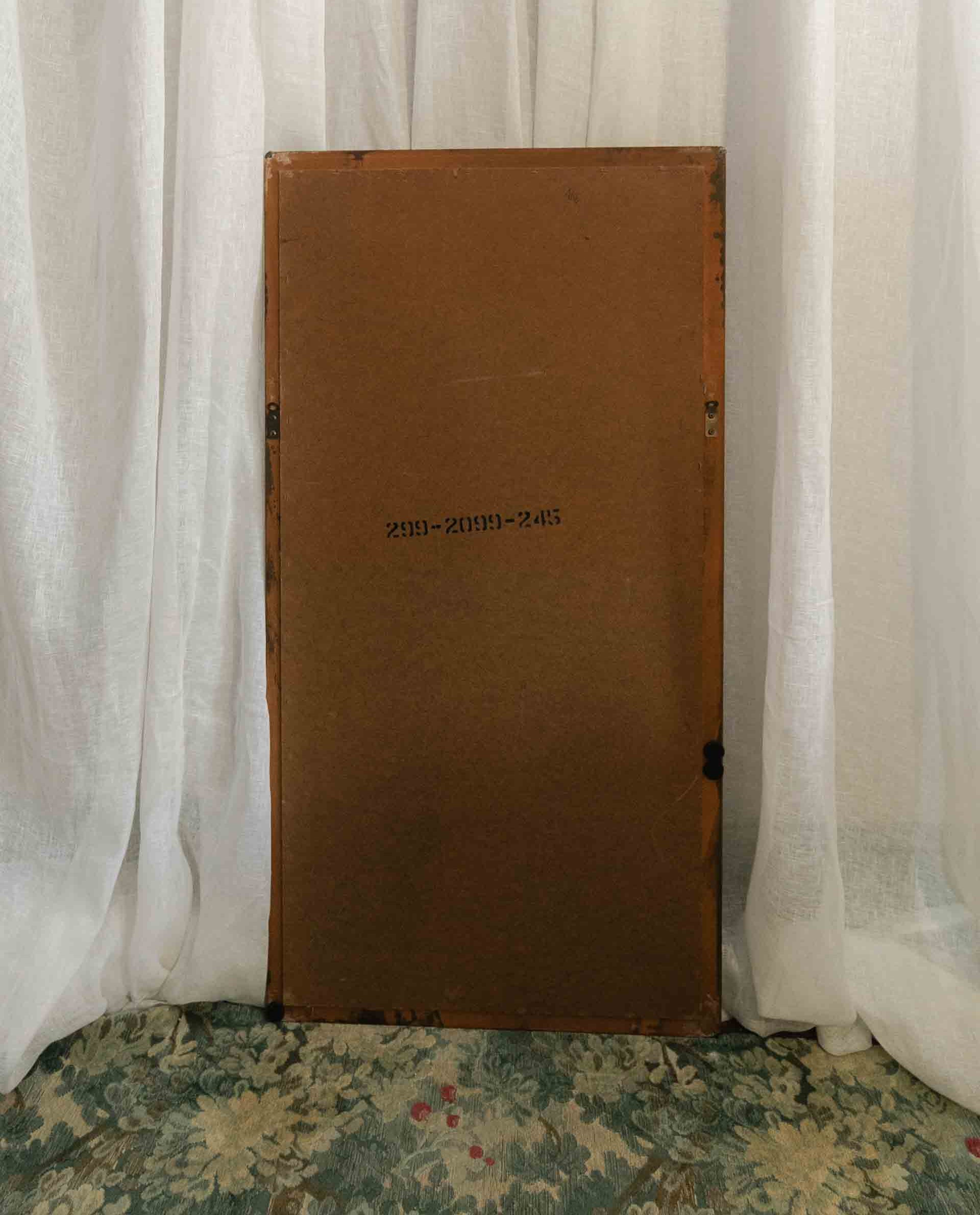 Description: This vintage mirror by National Mt. Airy features a rich, dark wood frame with clean lines and timeless appeal. Its classic rectangular shape makes it a versatile addition to an entryway, hallway, or above a dresser. A refined piece with enduring style and quality craftsmanship.
