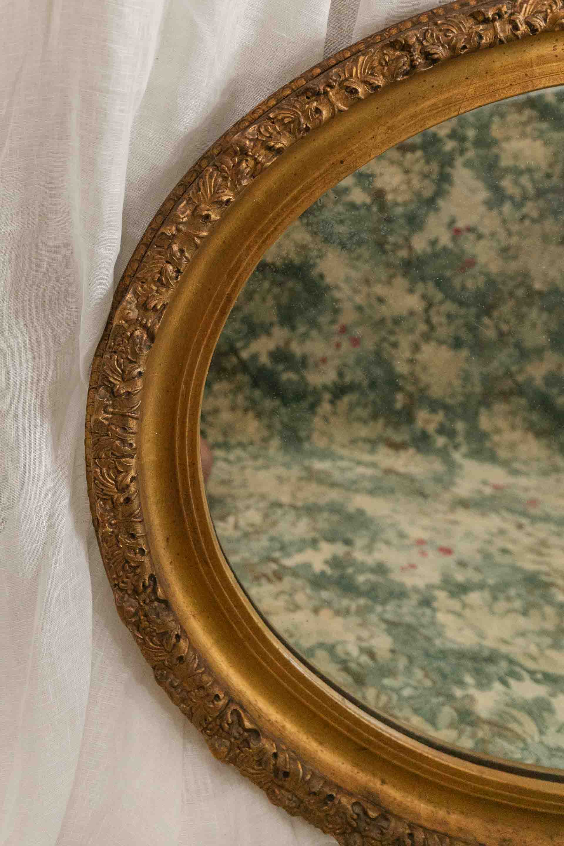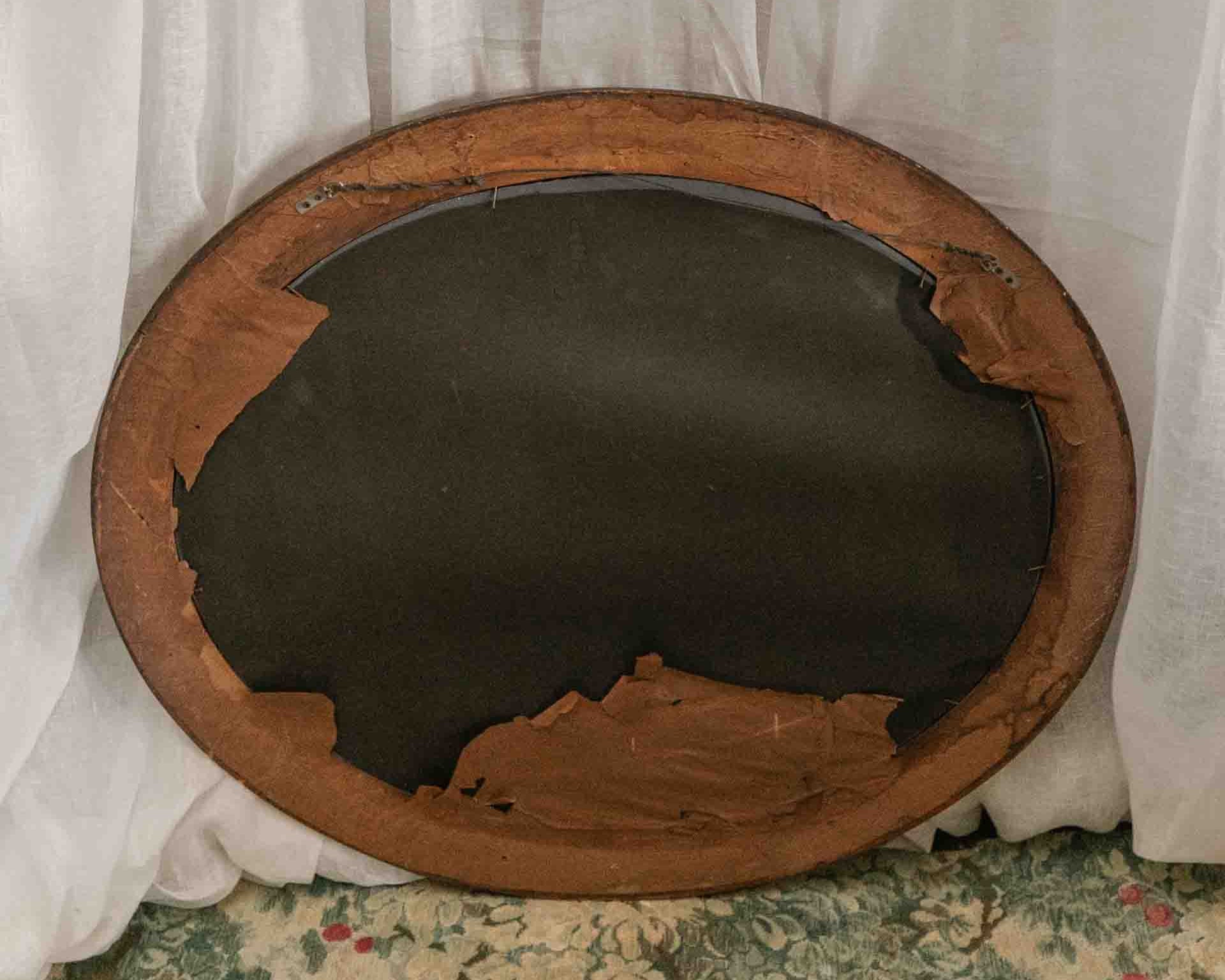 Description: This elegant old gold oval mirror exudes timeless charm with its warm, antiqued finish and delicate detailing. The gracefully curved frame is accented with subtle beading and a soft, time-worn patina that highlights its vintage character. Its refined oval shape makes it a versatile statement piece, perfect for adding depth and sophistication to any room.