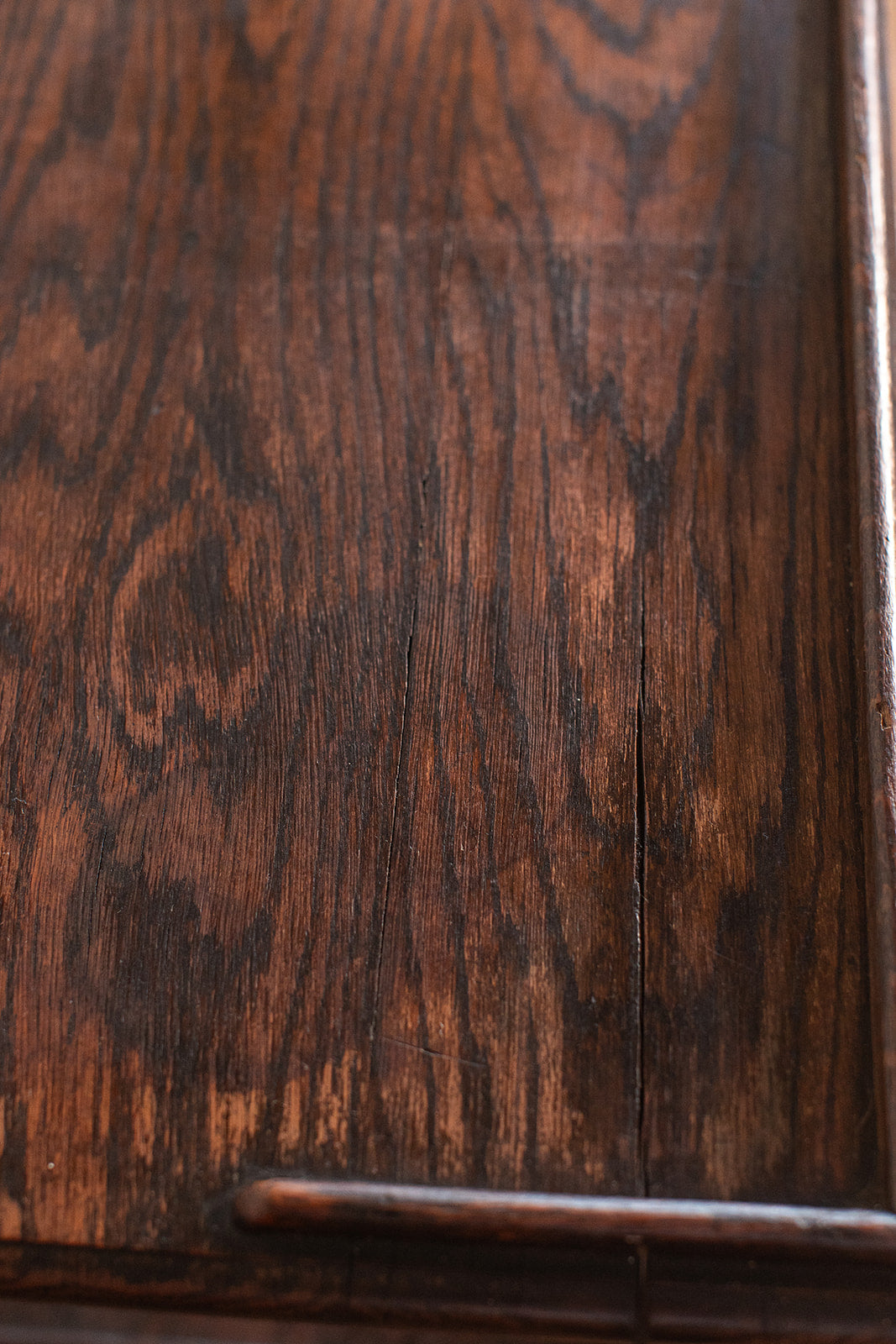 Condition Notes: Light scratches and a subtle water ring are visible on the top shelf. Age-related cracks are present, with the most prominent one located on the middle shelf.